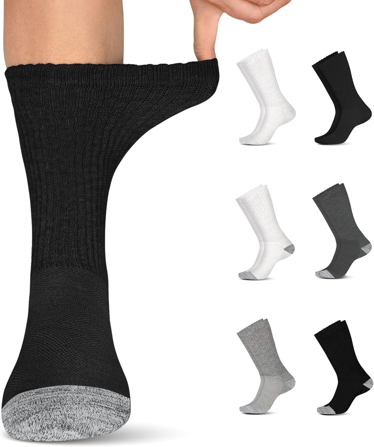 Diabetic Socks For Mens Womens Loose Fit Non Binding Cotton Crew Socks Clothing Shoes Jewelry